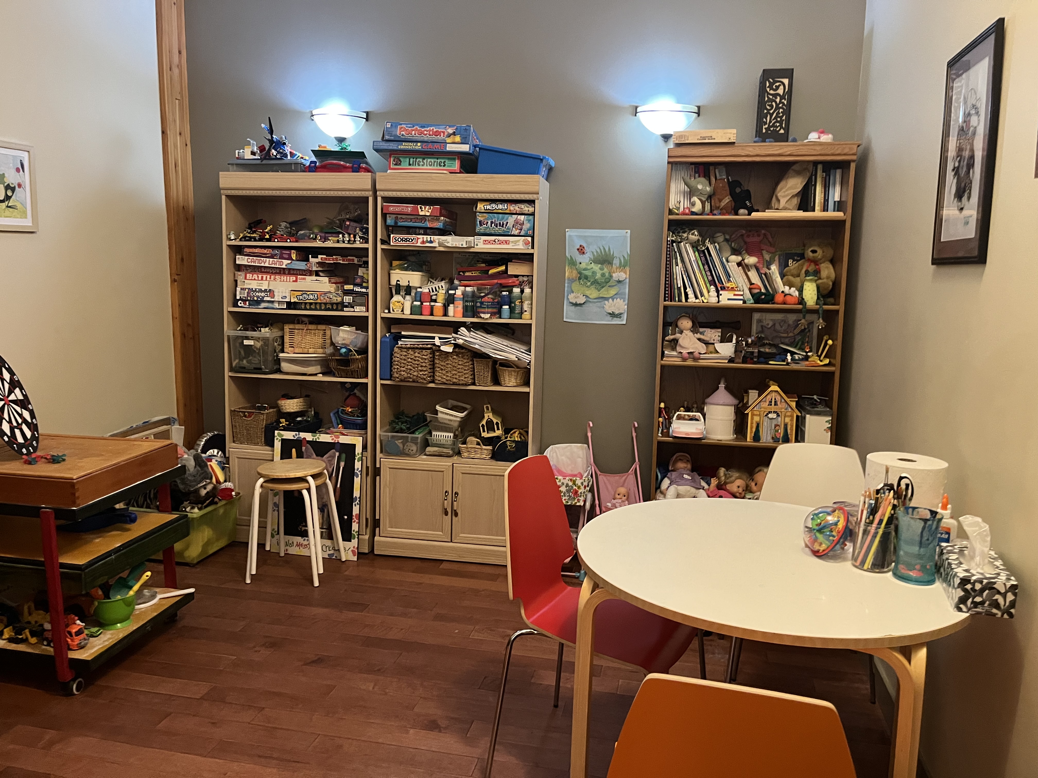 Small, cozy office in a space with two other psychologists, a social worker, and a body worker. Access to a waiting room and playroom included. Wonderful colleagues in the space and in the building (we meet once a month as a group for consultation and support). Reasonably priced. Perfect for someone starting out; doing assessments; or play therapy. There is an underground, heated parkade, an elevator, as well as a grocery store and cafe/restaurant in the building. Great location close to bus routes, south side, University, etc.